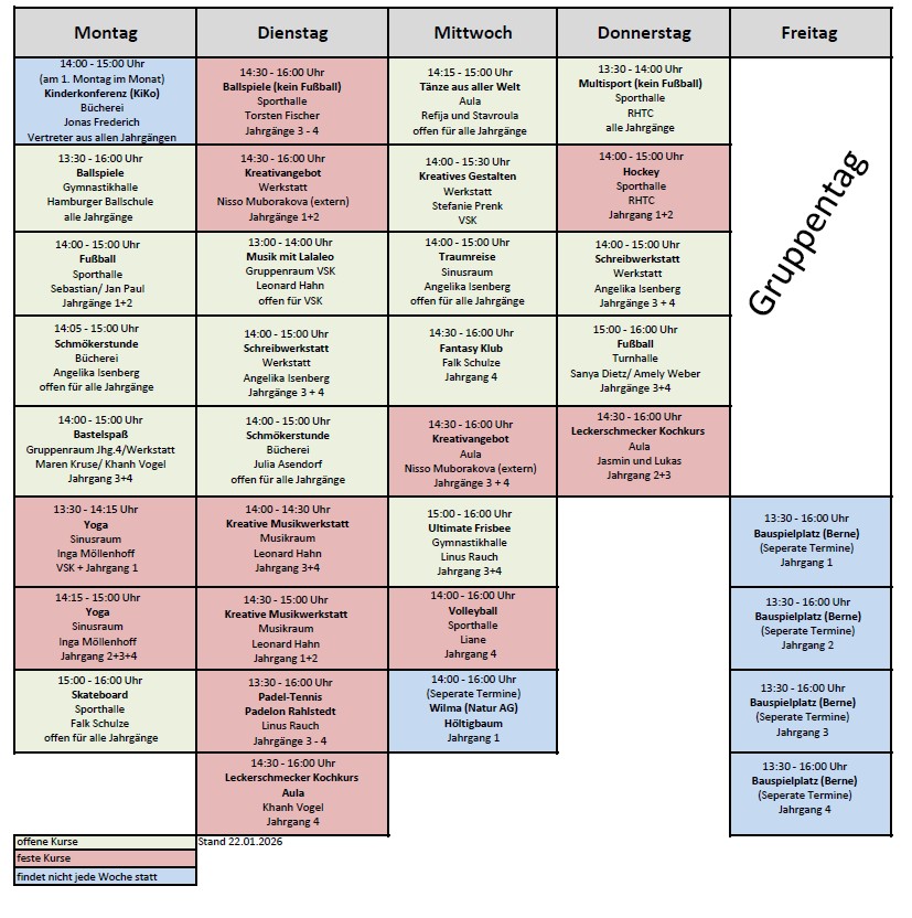 Hier finden Sie einen Überblick unseres Kursplanes im Schuljahr 2025/2026 zweites Halbjahr